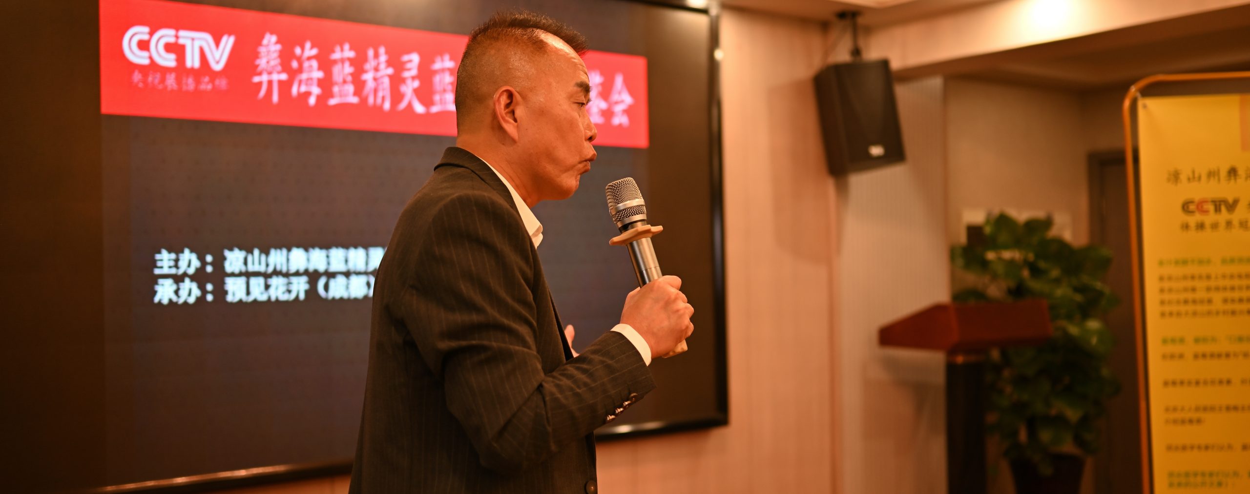 彝海蓝精灵蓝莓酒联合创始人夏先生代表凉山州彝海蓝精灵酒庄有限公司,热情洋溢地致欢迎辞!
