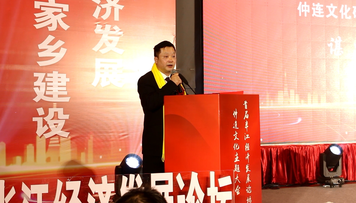 安化县政协副主席兼工商联主席刘畅术受中共安化县委石录明书记委托在大会上发言,他对仲连文化研究所取得的成就和论坛的成功召开表示热烈祝贺,向外来客商介绍了安化的发展历史和人文经济特征和县委政府提出的“引老乡,回故乡,建家乡”的招商引资战略。他说,今年六月份,中共中央总书记、国家主席、中央军委主席习近平在北京召开的文化传承发展座谈会上作了重要讲话:“只有全面深入了解中华文明的历史,才能更有效地推动中华优秀传统文化创造性转化、创新性发展,更有力地推进中国特色社会主义文化建设,建设中华民族现代文明。”并强调要坚持文化自信,由多元文化汇聚成共同文化,化解冲突,凝聚共识,坚持文化传承发展的“两个结合精神”。即将筹备成立的“半江经济发展促进会”,立足大力发展经济建设,助力乡村振兴,这符合县委政府“引老乡回故乡建家乡”的招商引资战略,有利于地方经济社会发展,更有利于弘扬谌氏文化和谌氏精神,有利于建设开放、创新、秀美、富饶、幸福新安化,为此对安化县仲连文化研究会在文化研究中所取得的成果表示热烈的祝贺。