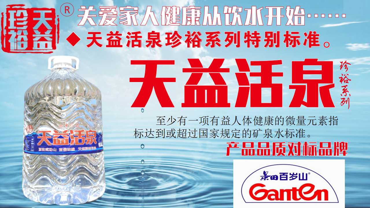 天益活泉珍裕商标系列15L一次性桶装水产品介绍